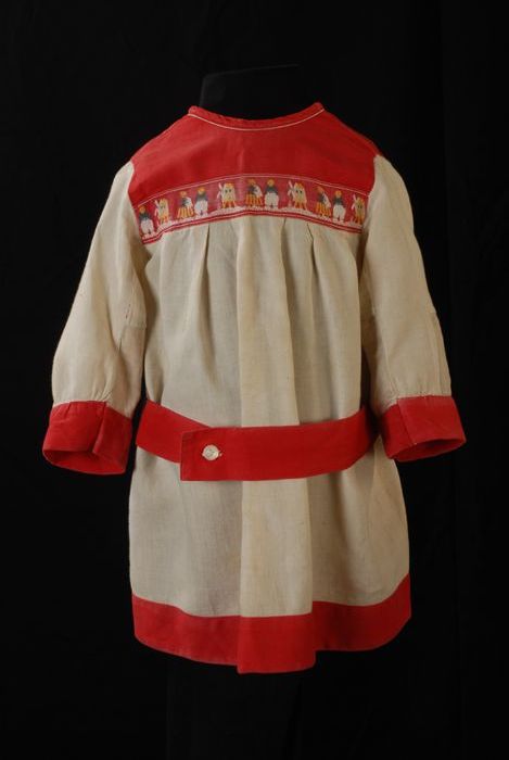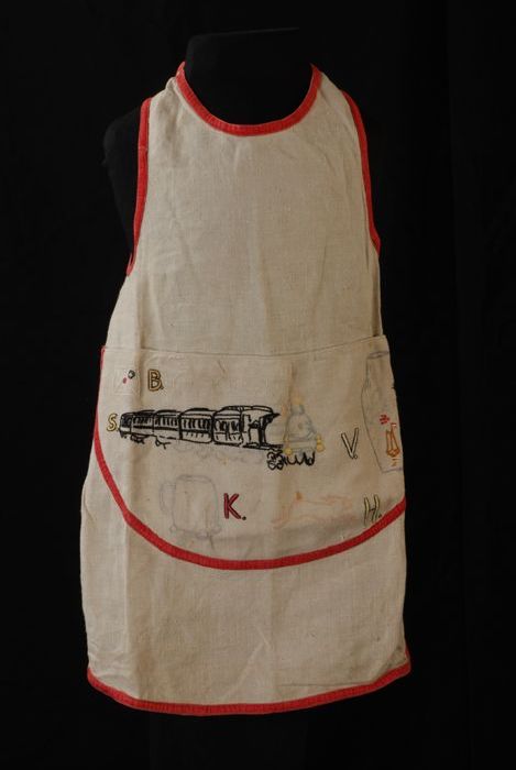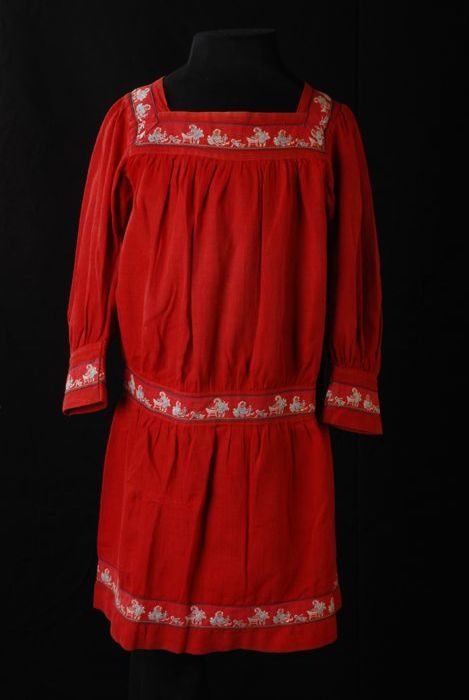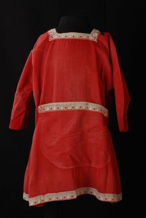 Kinderjurk, morsschort van rood katoen met verlaagde...
