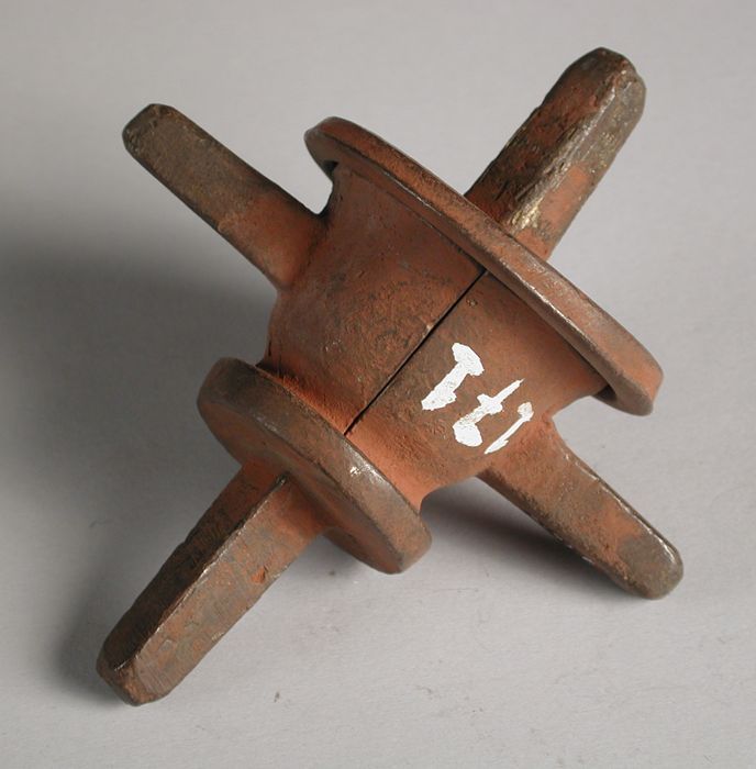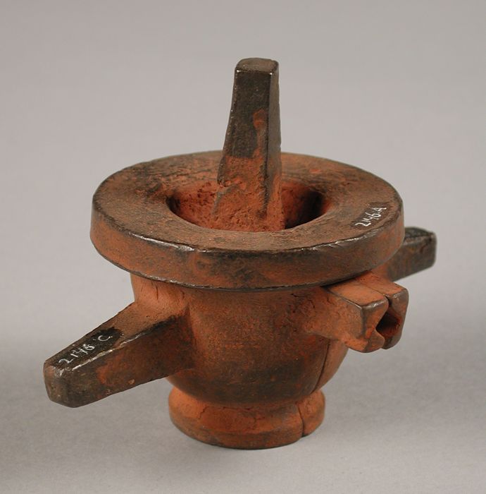 Tweedelige bronzen mal voor voet van pot of kan