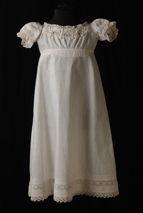 Lange witte kinderjurk, empire, mousseline langs de ...
