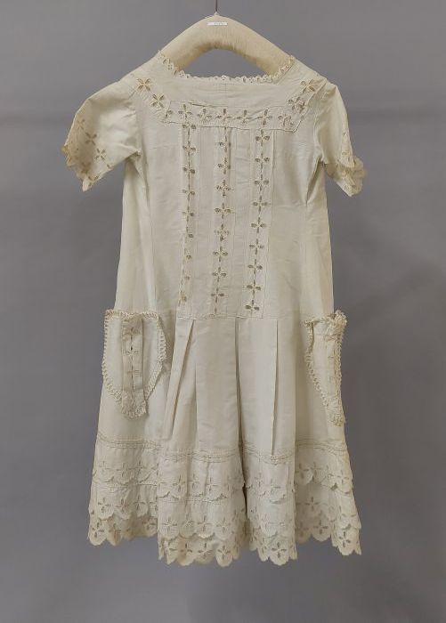 Kinderjurk van wit katoen met korte pas en ingezette...