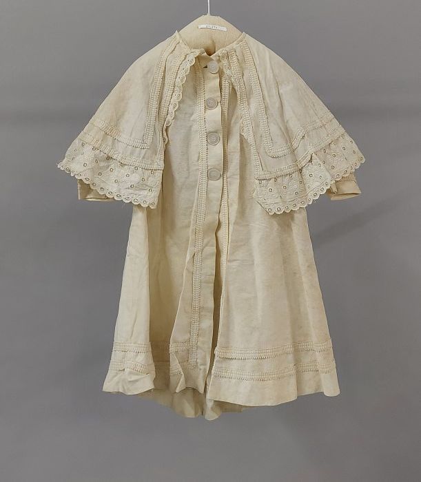 Kinderjurk, schortmodel van crèmekleurig katoen met ...