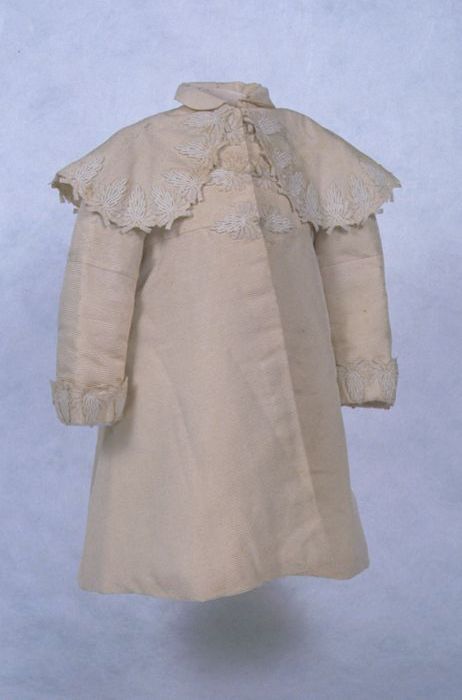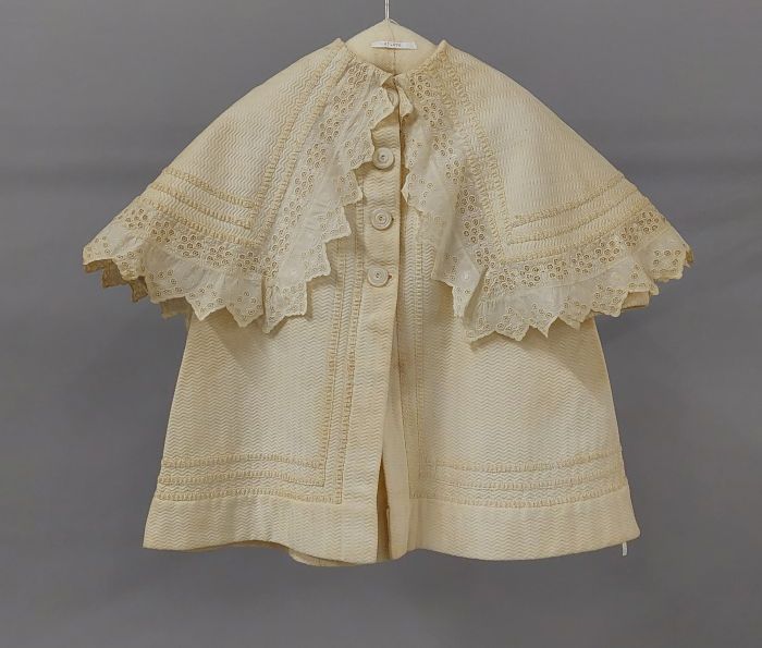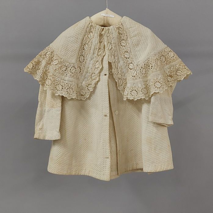 Kinderjas van wit rib piqué met een vaste pelerine, ...