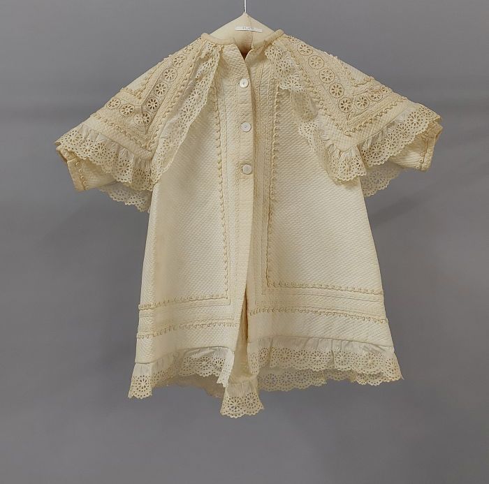 Kindermantel van wit katoen met ingeperste zigzaglij...