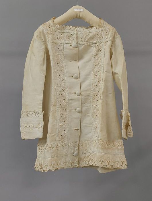 Lange kinderjurk of onderjurk van wit katoen met een...