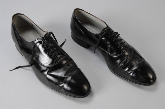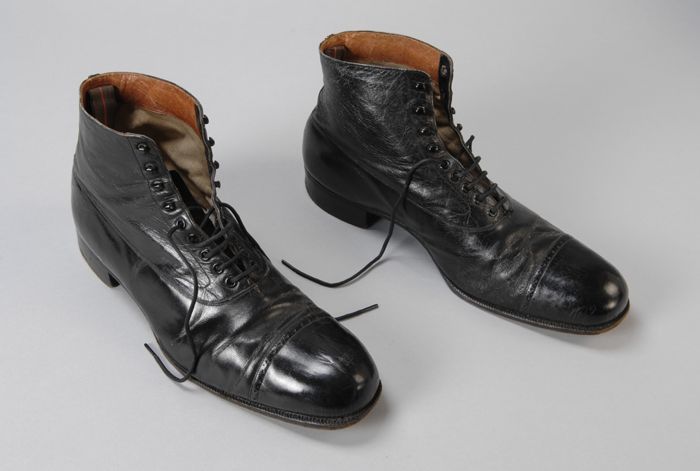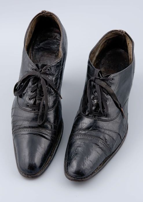Zwarte leren herenschoen met vetersluiting, lange, s...