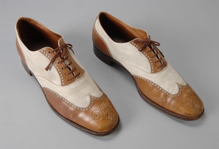 Herenschoenen van lichtbruin leer en wit suède met v...