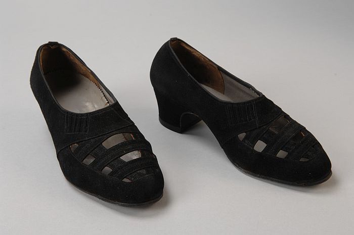 Zwart suède damesschoenen met opengewerkte voorvoet ...