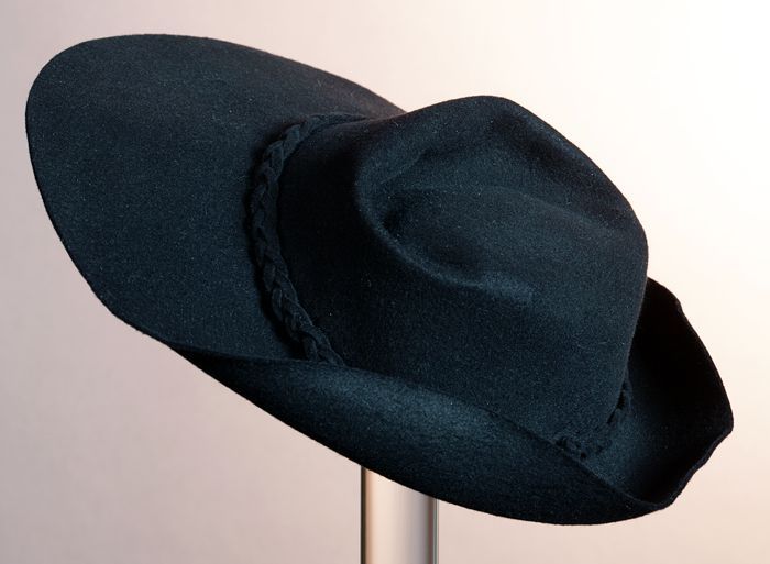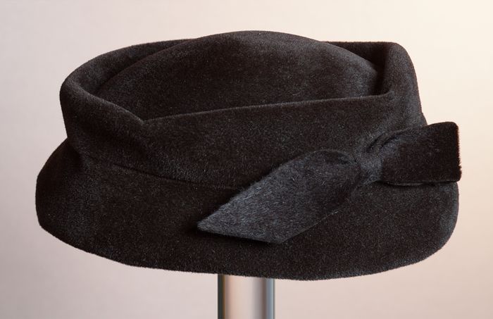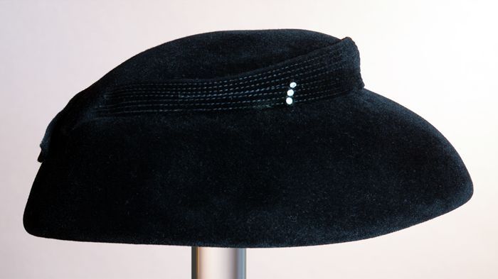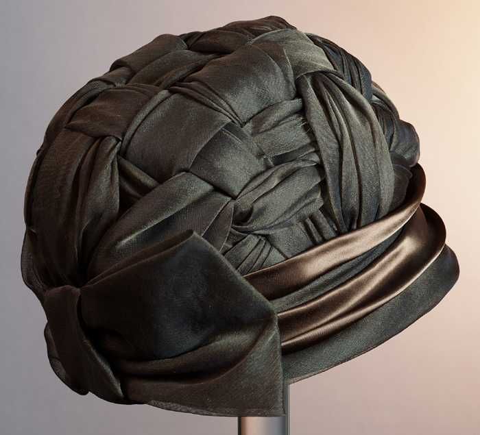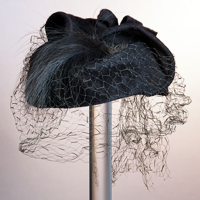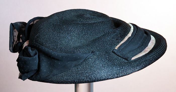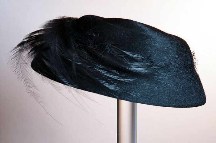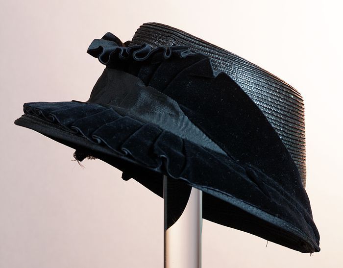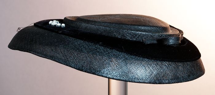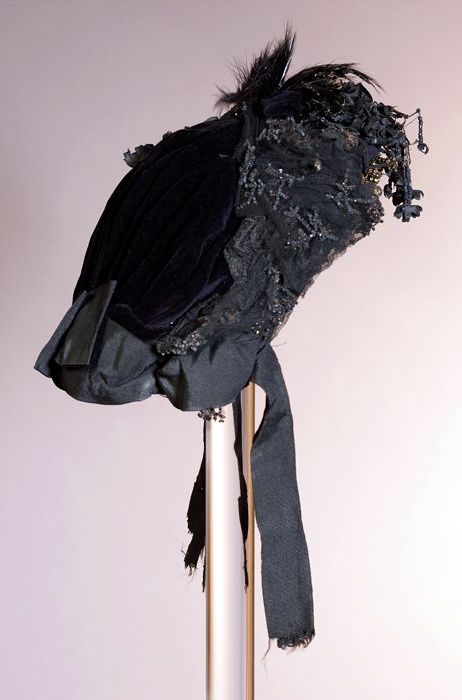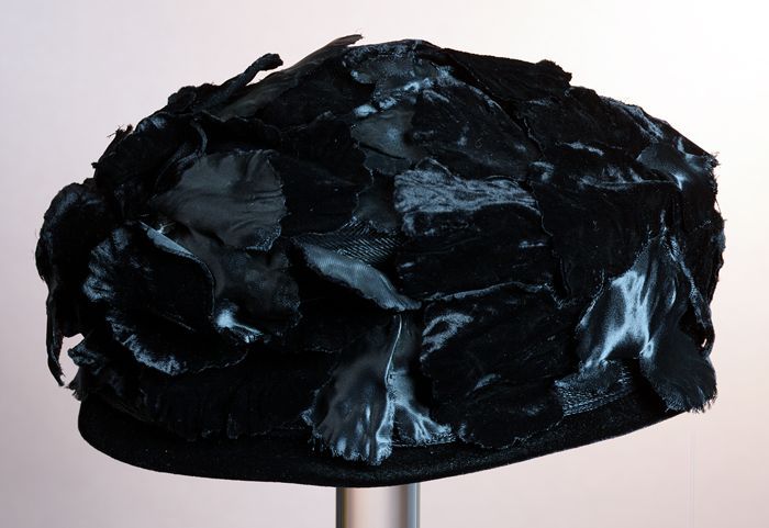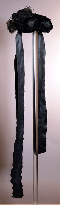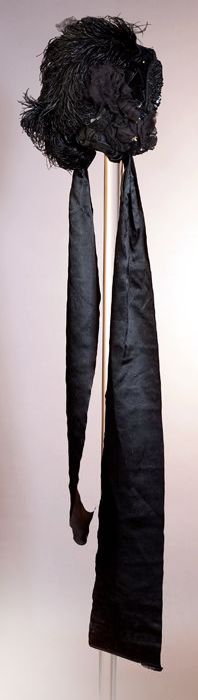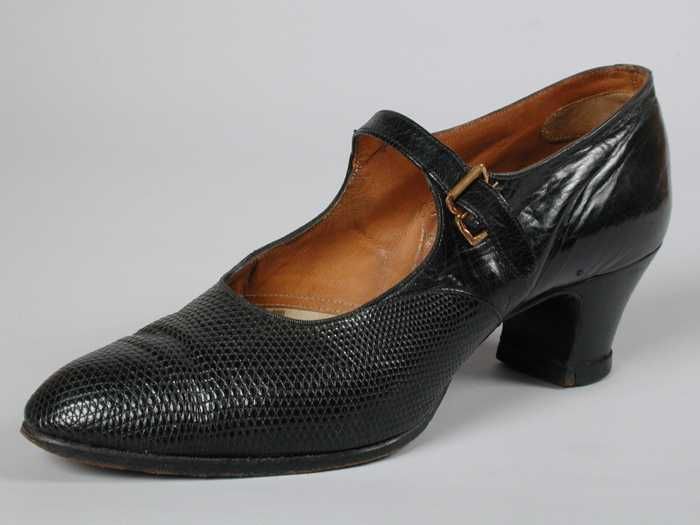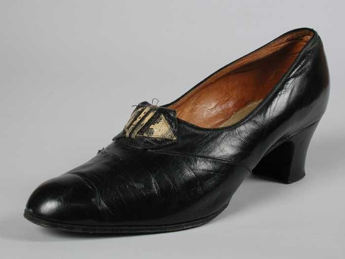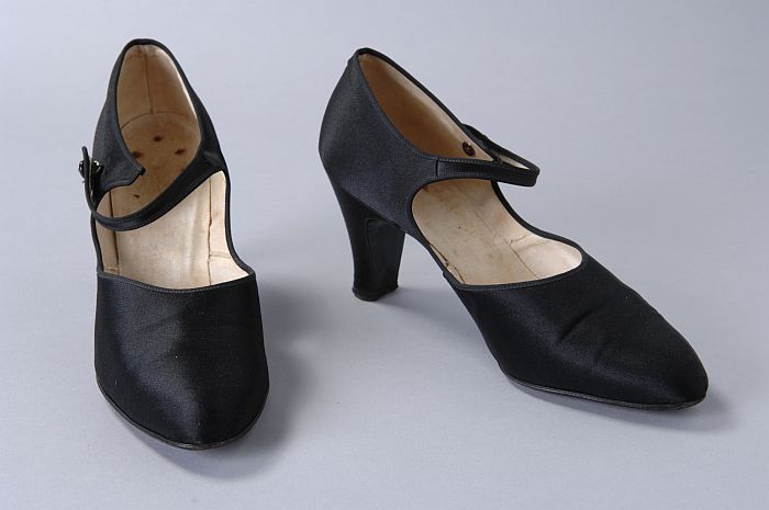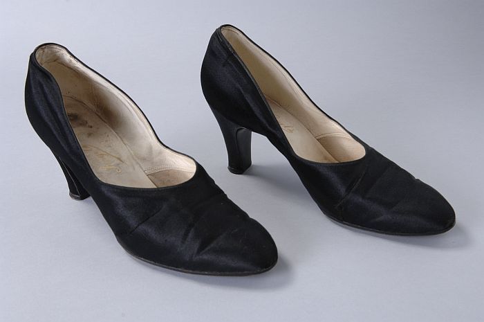 Zwart satijnen pumps met hoge louishak, vrij hoog op...
