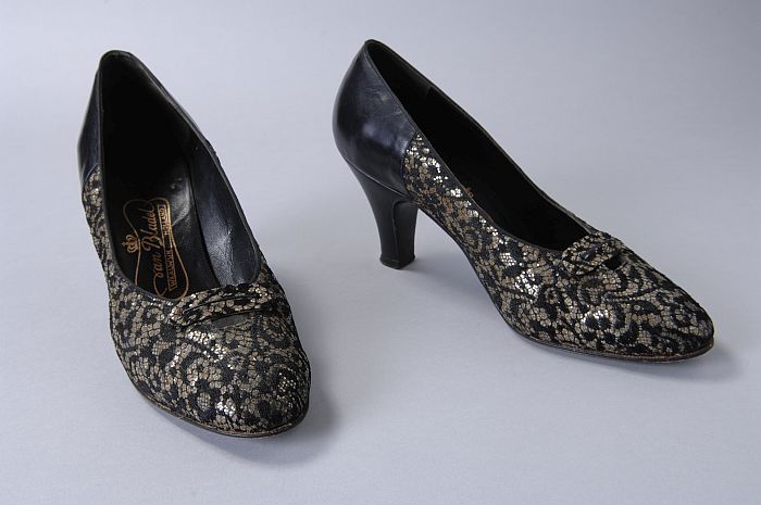 Zwart en gouden pumps, kant met goudkleurige paillet...