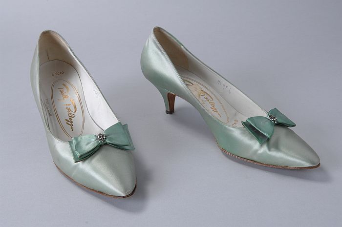 Lichtgroene zijde satijnen pumps met een met strass-...