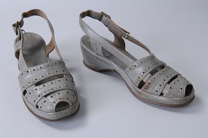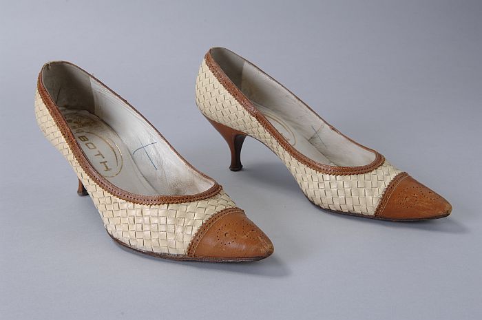 Witte met bruine pumps van gevlochten leer en kort n...