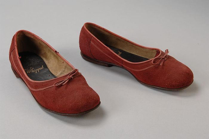 Oud roze suède platte damesschoenen, instapper, rode...