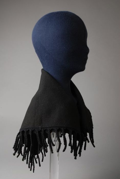 Poppenomslagdoek van zwarte wol met franjerand, popp...
