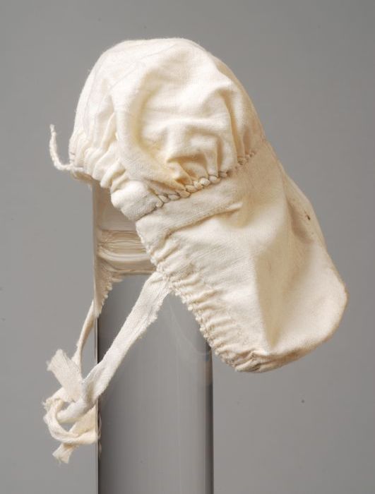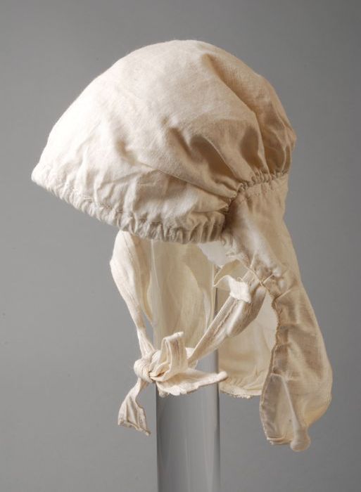 Miniatuur muts van wit katoen, poppengoed behorend b...