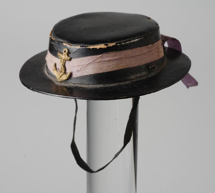 Miniatuur gondelier hoed van zwart karton met lila l...
