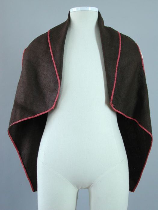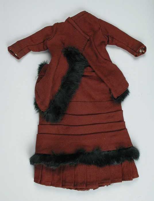 Poppenmantelpak, getailleerd jasje en rok van roodbr...
