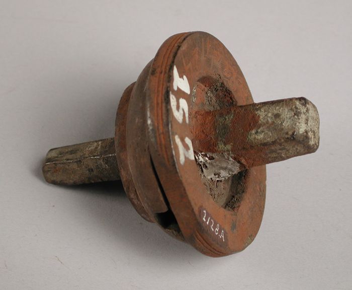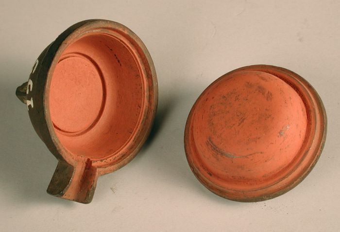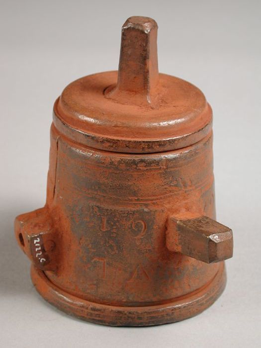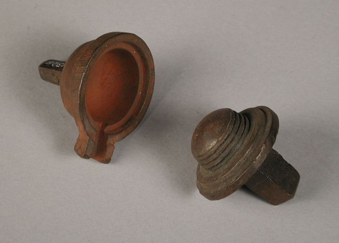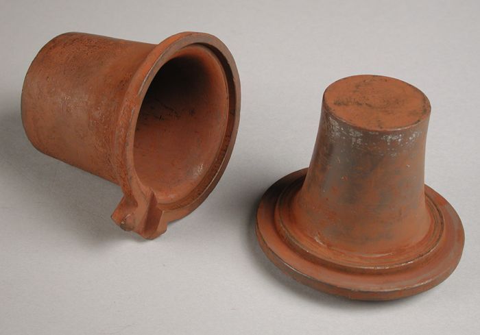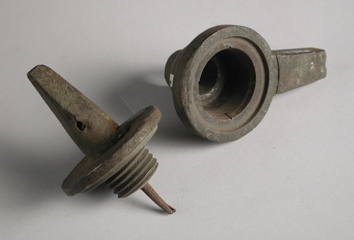 Tweedelige bronzen mal voor onderkant van pot of kan