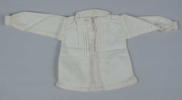 Poppenonderhemd van wit katoen met lange mouwen en n...