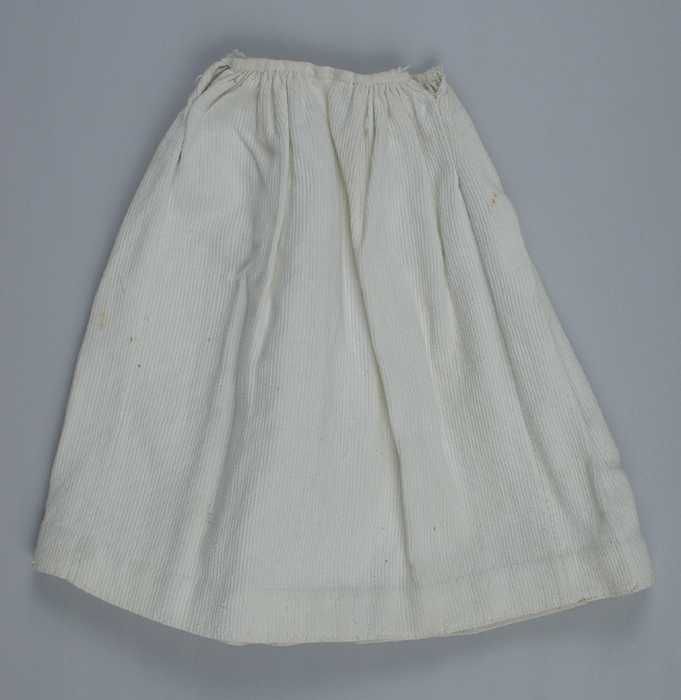 Poppenonderrok van wit piquékatoen, aangerimpeld aan...