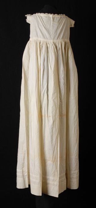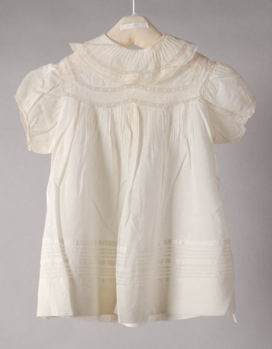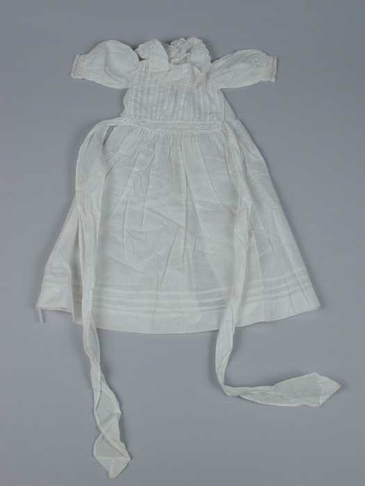 Witte poppenjurk met oprijgjes, broderie tailleband