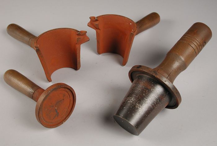 Vierdelige bronzen mal voor bekers, met initialen "W...