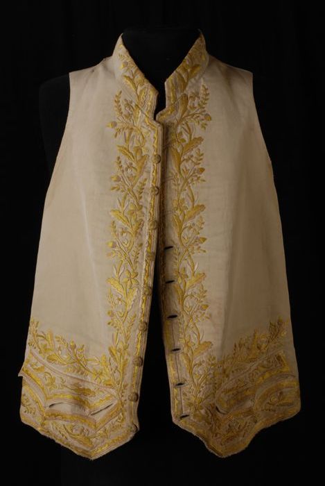 Herenvest van crèmekleurig zijde, geborduurd met blo...