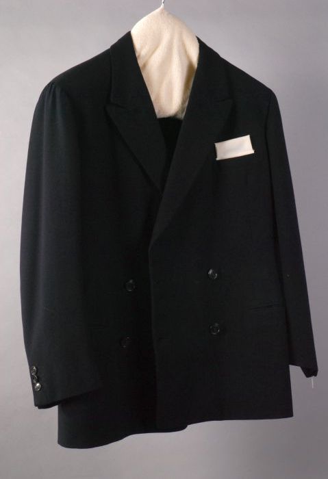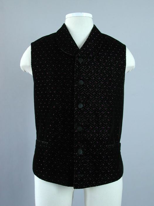 Herenvest van zwart fluweel met roze moesjes en gele...