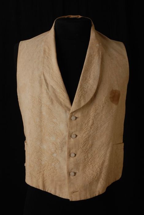 Herenvest van crèmekleurig ripszijde, geborduurd in ...