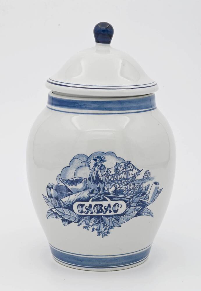 Tabakspot met deksel van keramiek 'Tabac'. ca. 1950-...
