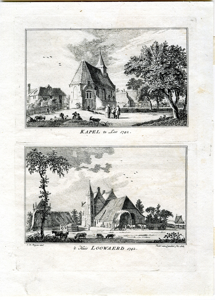 Gravure van de Kapel te Loo 1742 en 't Huis Loowaerd...