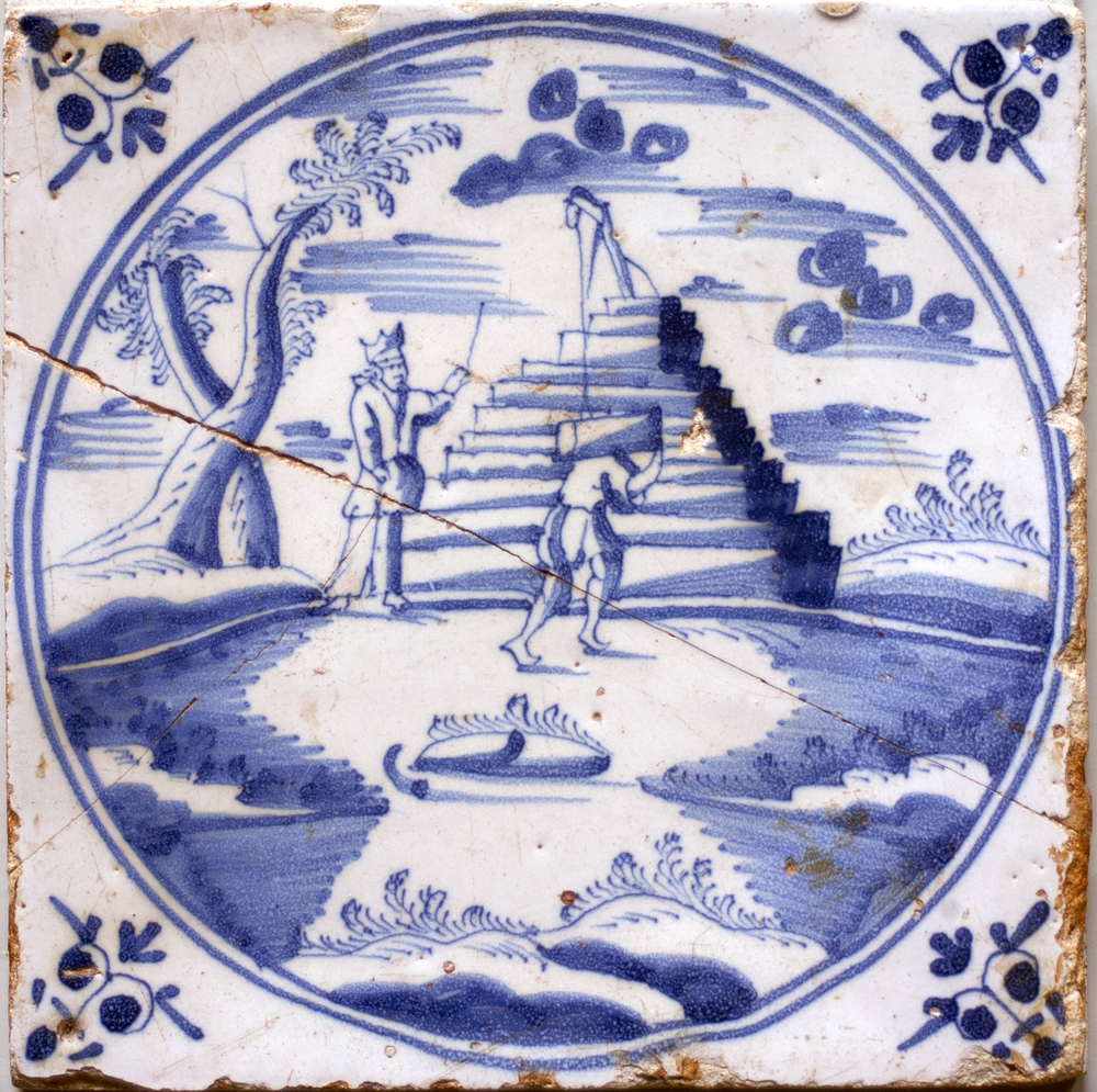 tegel van keramiek met tinglazuur, voorstellende: De...