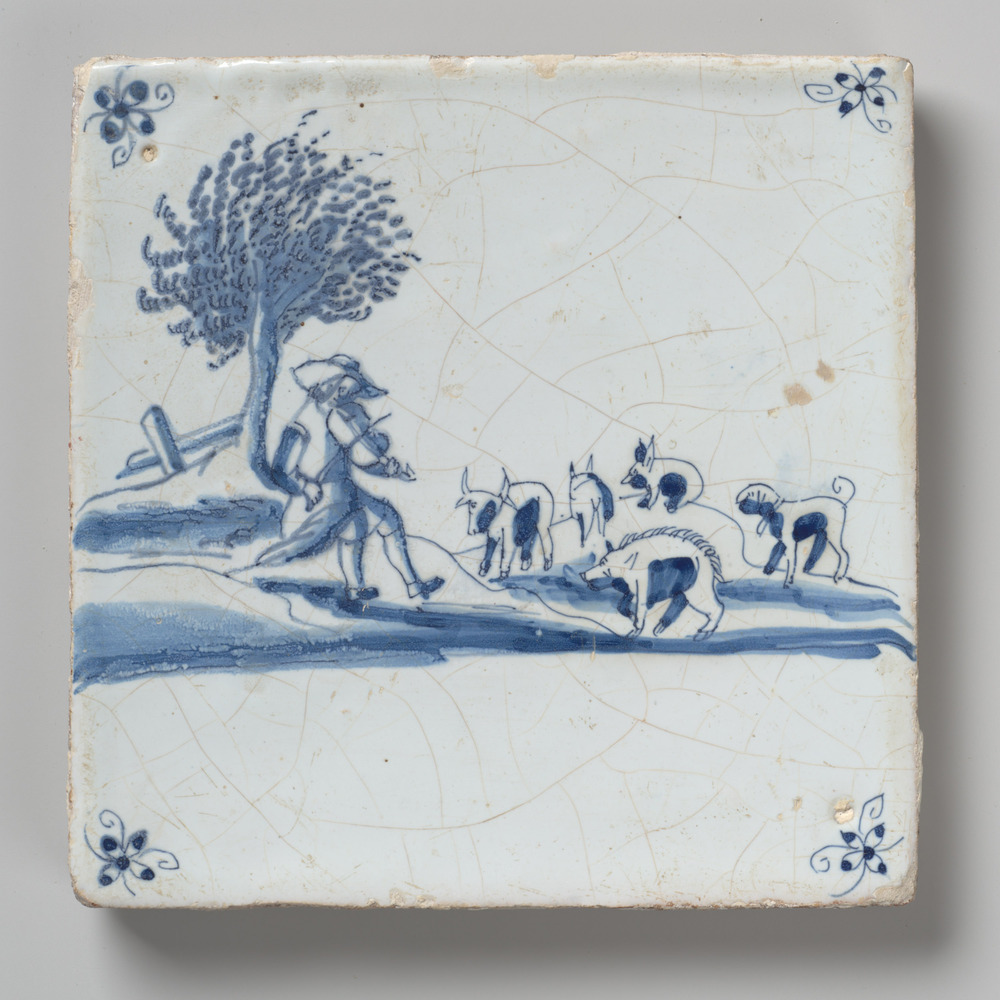 tegel van aardewerk met tinglazuur, voorstellende: h...