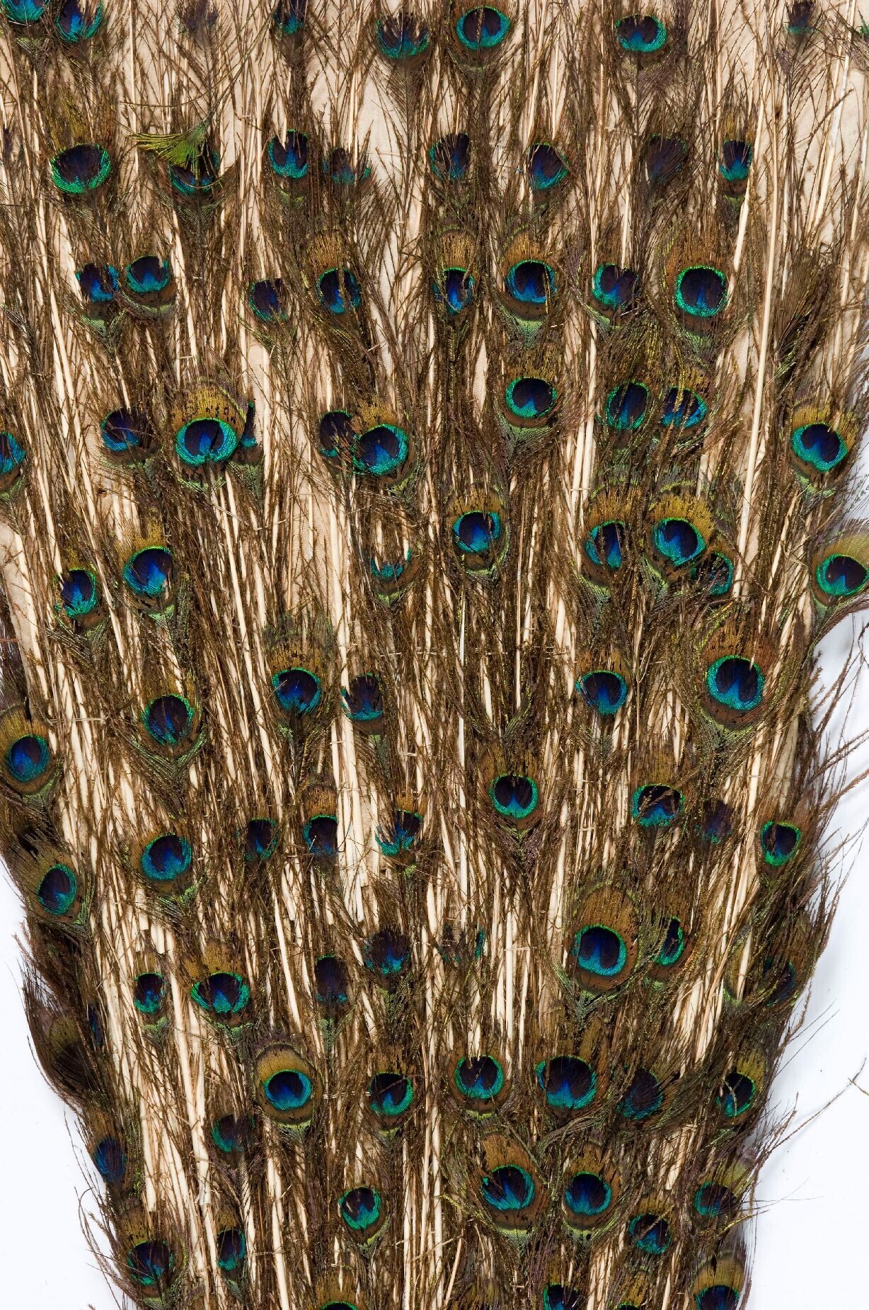 A fan of a peacock's tail