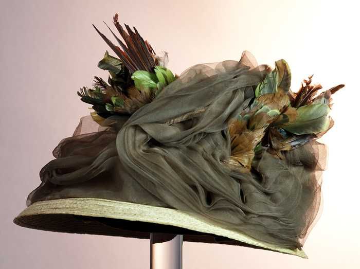 Dameshoed, naturelkleurig grof bandstro, asymmetrisc...