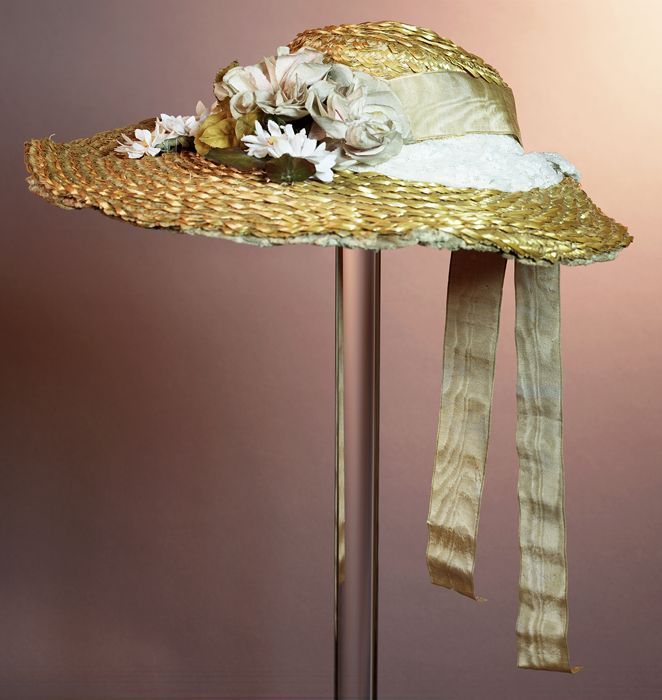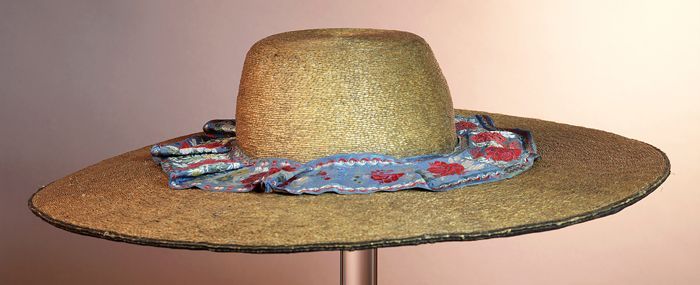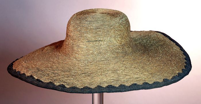 Dameshoed van stro met bruin ripslint