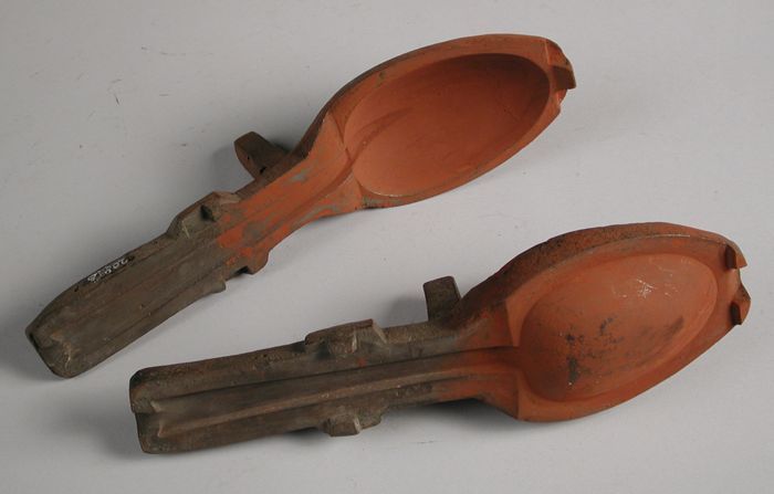 Tweedelige bronzen mal voor lepel met dubbel lof