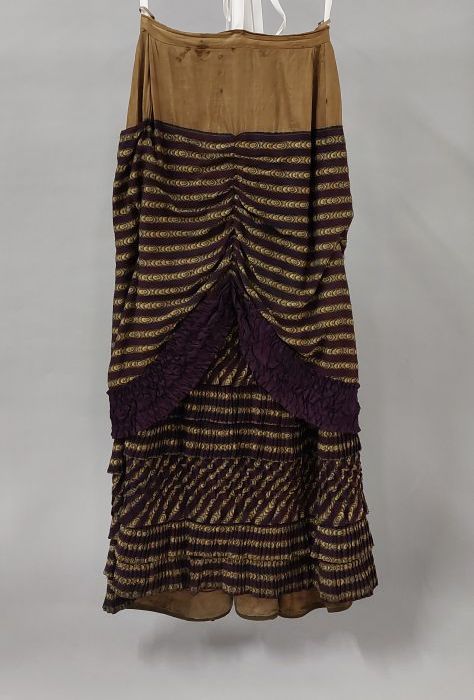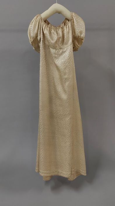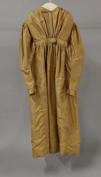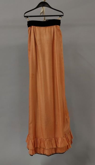 Tweedelige japon van abrikooskleurig zijde, lange wi...