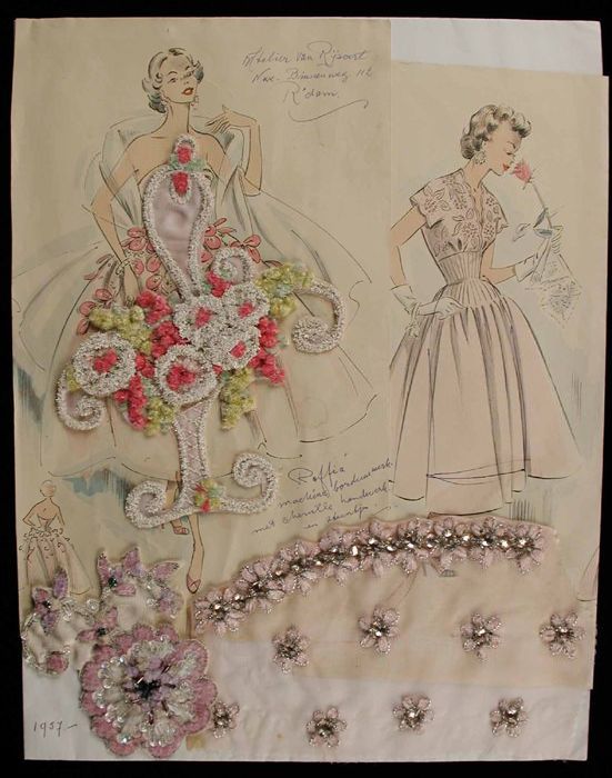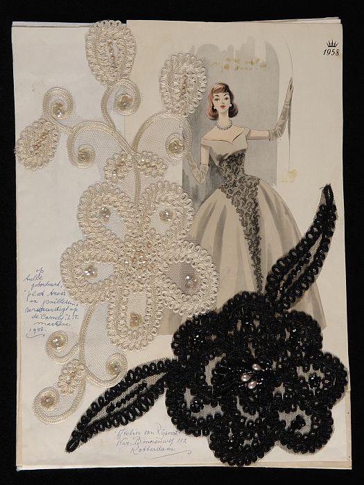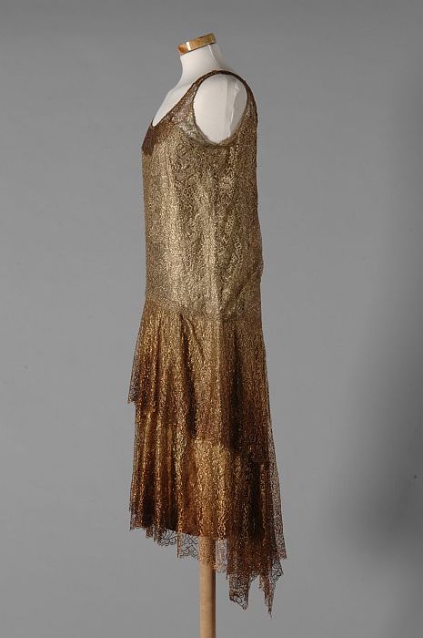 Halflange mouwloze avondjapon van goudkant en lamé i...