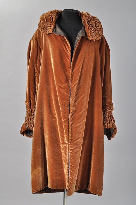 Bruine fluwelen avondmantel met opgevulde kraag met ...