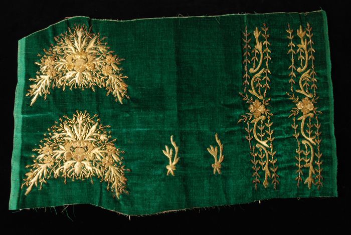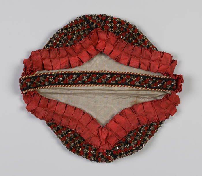 Handwerkmand, geborduurd in zwart en rood wollen pet...