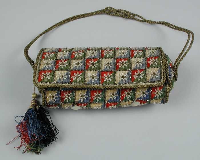 Cilindervormige avondtas, borduursel met kralen, rui...