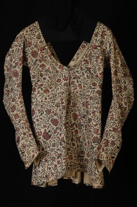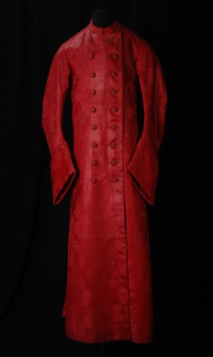 Kamerjas met vest ineen, van roze rood damast met mo...