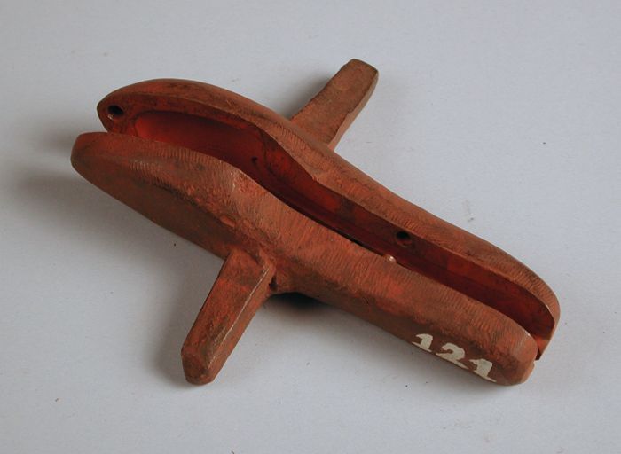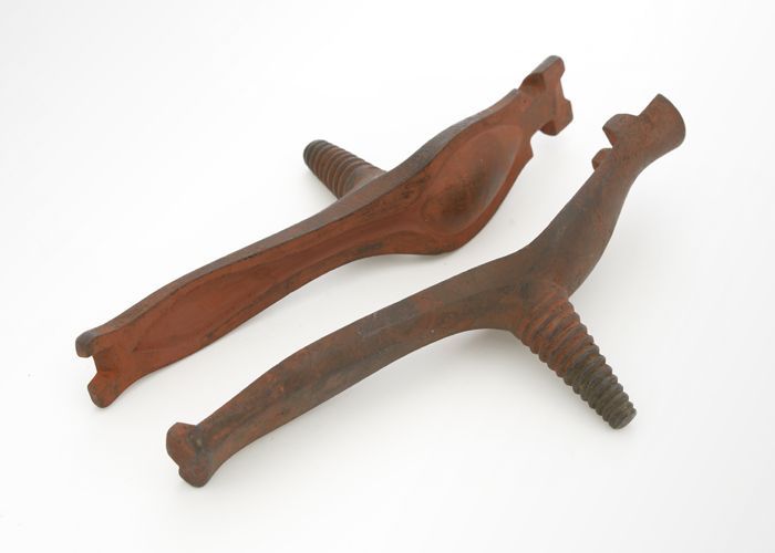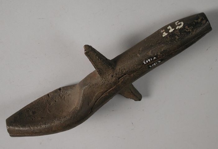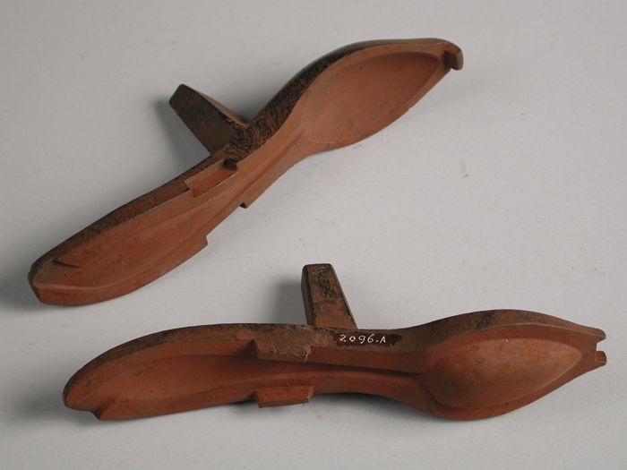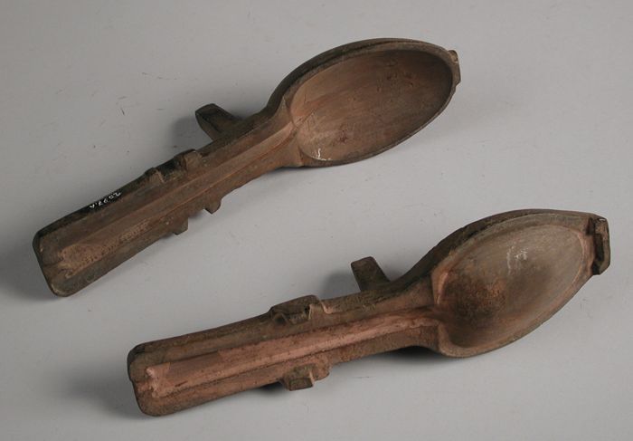 Tweedelige bronzen mal voor lepel met rattenstaart