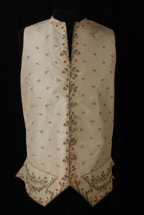 Mannenvest, van crèmekleurig zijde met een gekleurd ...