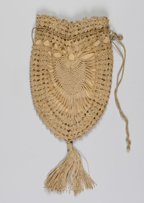 Reticule, in ajour gehaakt ecrukleurig garen, ondera...
