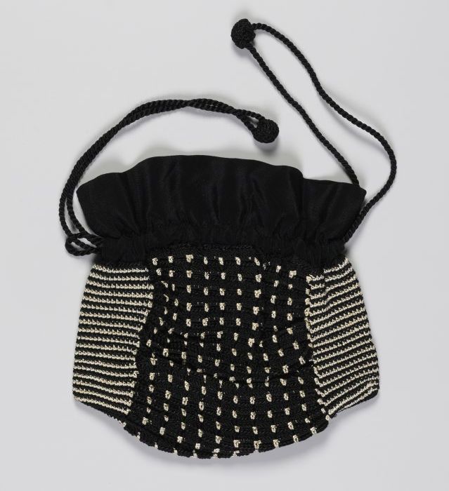 Reticule gehaakt van zwarte en witte zijde (?), stip...