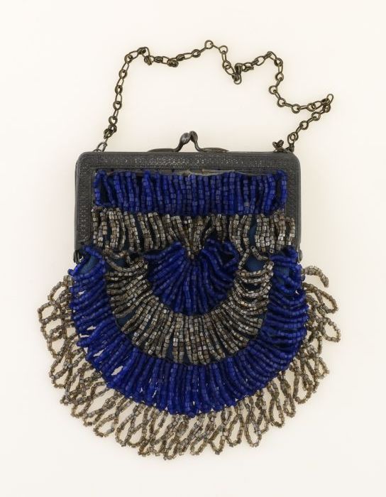 Avondtas, kleine kralenbeurs met strengen blauwe en ...