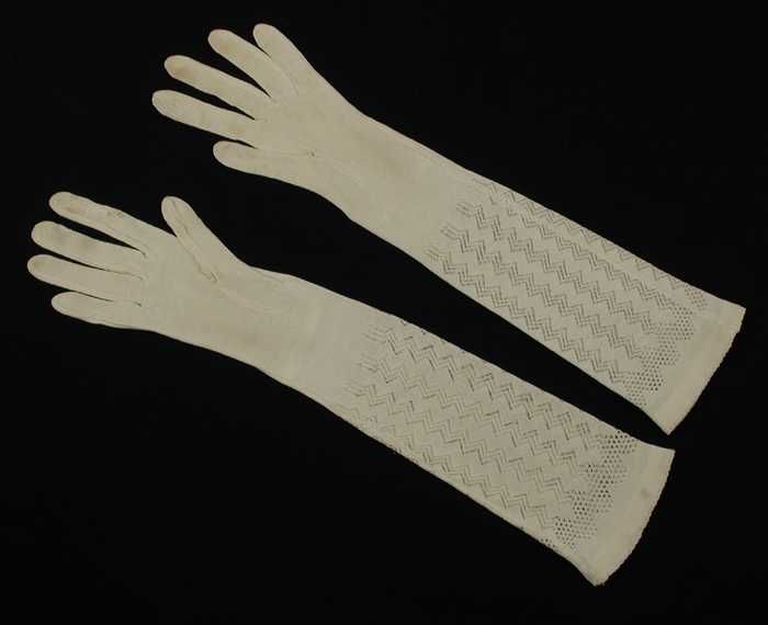 Paar ellebooglange dameshandschoenen van crèmekleuri...
