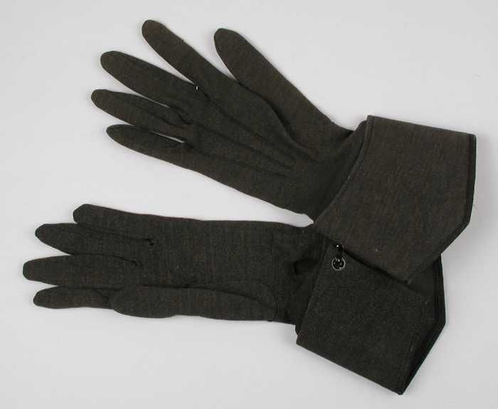 Twee korte linkerhandschoenen van grijsbruin gemêlee...