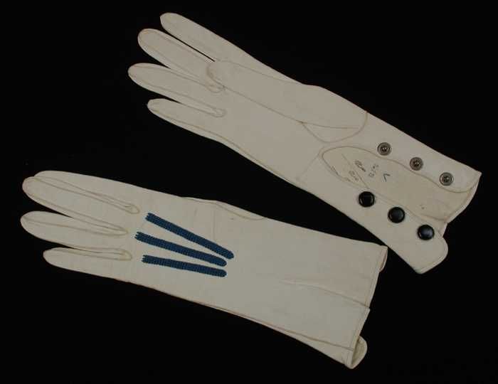 Paar korte dameshandschoenen van wit leer met drie b...